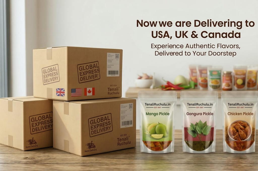 Craving authentic Andhra pickles abroad? TenaliRuchulu delivers traditional mango, gongura, and chicken pickles to USA, UK, and Canada. Freshly prepared and safely packed. Order now!